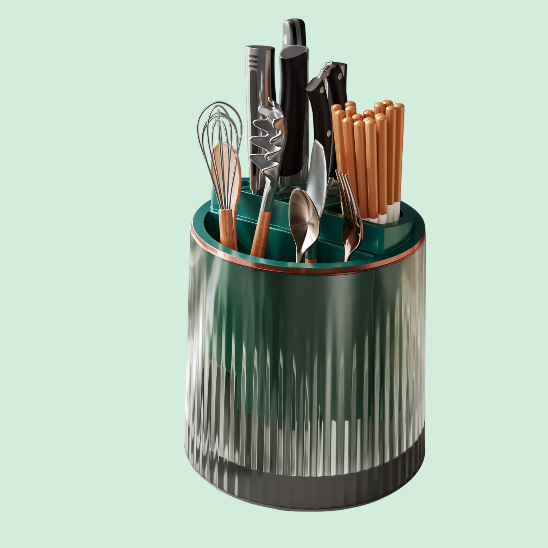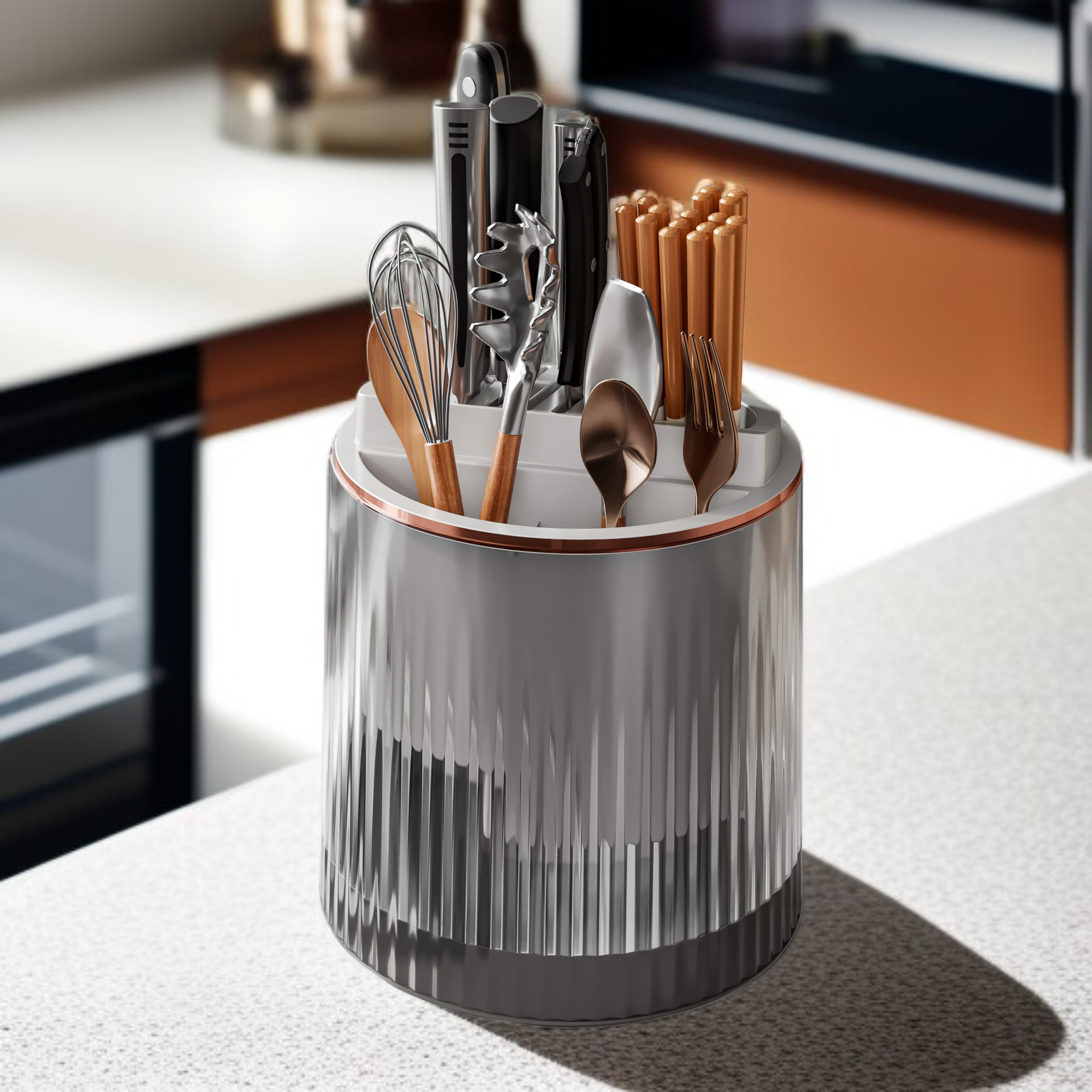 가벼운 회전식 칼꽂이로 공간을 효율적으로 정리, 고급스러운 디자인과 실용적인 수납 선반으로 주방 활용도 향상